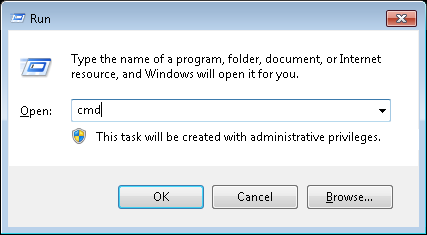 Step 2: Type cmd into the window and click OK. A black window should come up.