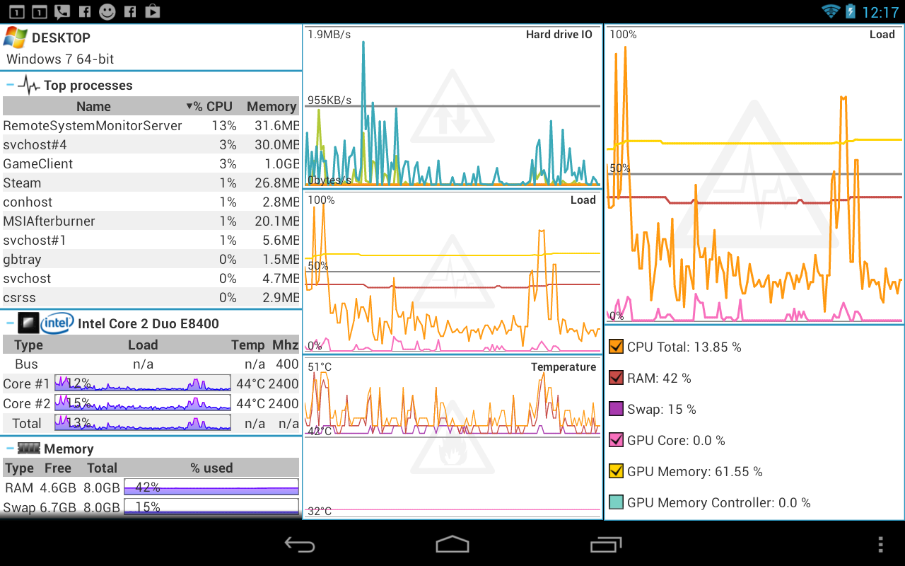 I’ve always been big on system monitoring when it comes to my PC Gaming rig’s hardware. Â Not just the temperature but every aspect possible in as many ways as possible. Â I’ve tried many applications but the one that really took the cake for me was actually an Android App called Remote System Monitor. Â It allows me to monitor my systems for the majority of phases of system tweaking. Â From overcloaking to tweaking an individual game, I can see the information that is relevant to whatever it is that I’m doing.