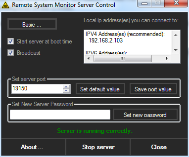 Installation is simple.  First install the Remote System Monitor Server on the PC that you want to monitor.  Then install the Remote System Monitor Client on your Android device.  Ensure that your Android is connected to the same network that your PC is connected to.  Then start up the Remote System Monitor Server Control program on your PC and configure it to your liking.