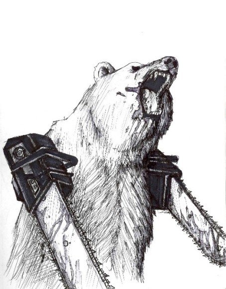 Let’s wrap it up with the thing of some peoples’ nightmares… awesome peoples’ nightmares! A bear with frickin chainsaws for arms. I found this image when I was searching for better choices than guitars and laser guns for arms. That’s it, game over man, game over! However, awesome people would definitely have this for a pet.