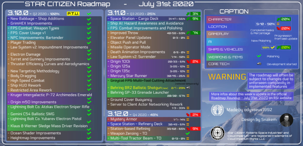 - Official Roadmap Roundup for July 31st, 2020: https://robertsspaceindustries.com/comm-link/spectrum-dispatch/17708-Roadmap-Roundup-July-31st-2020