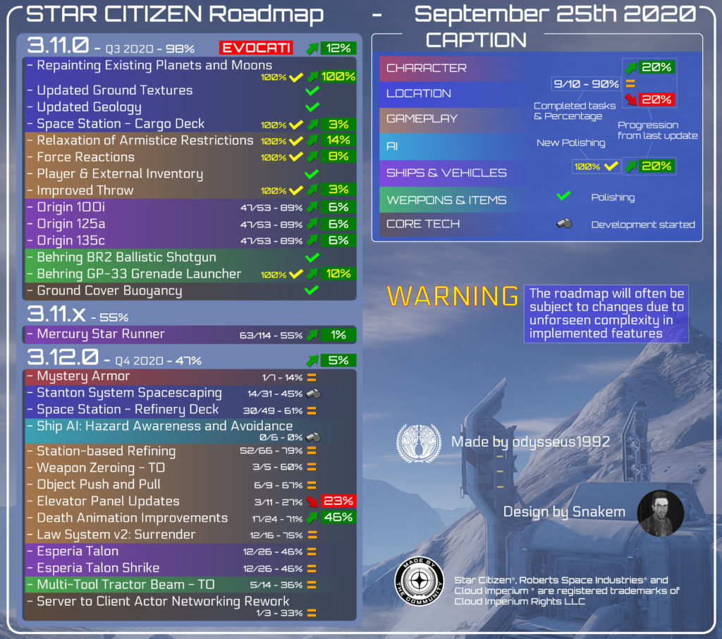 - Roadmap Roundup – September 25th, 2020: https://robertsspaceindustries.com/comm-link/spectrum-dispatch/17800-Roadmap-Roundup-September-25th-2020