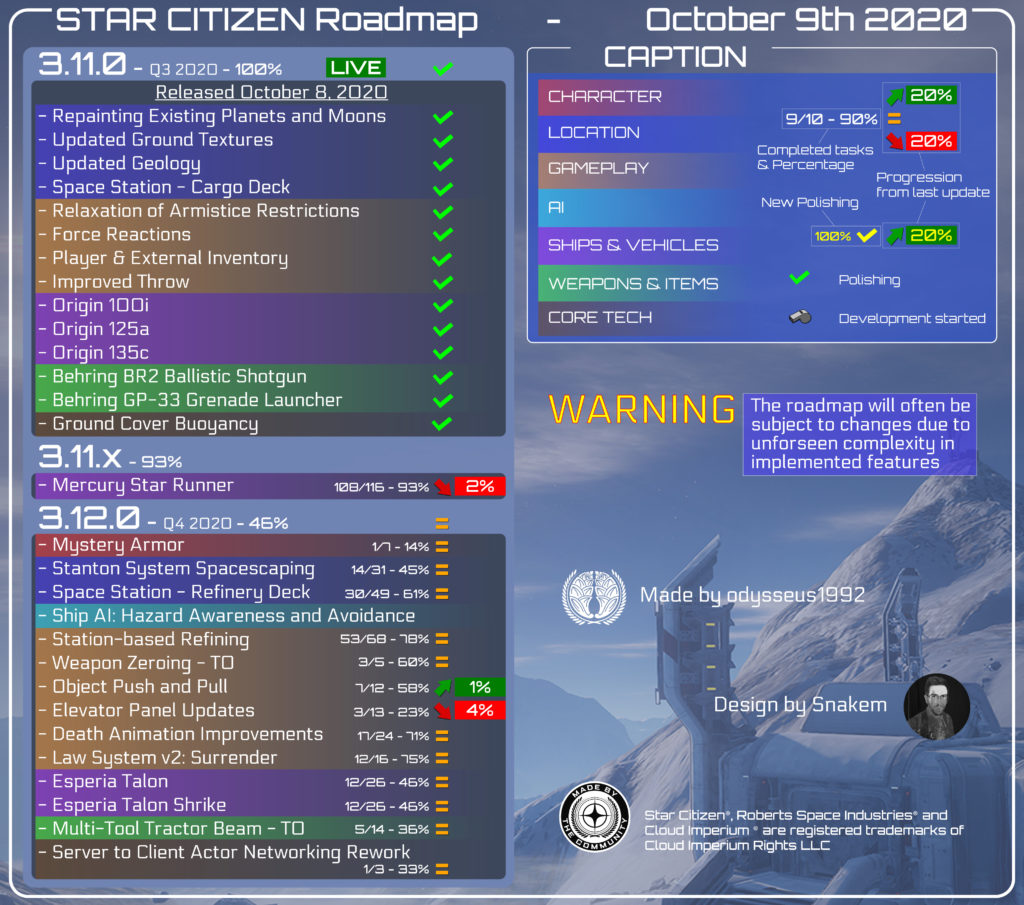 - Roadmap Roundup – October 9th, 2020: https://robertsspaceindustries.com/comm-link/spectrum-dispatch/17822-Roadmap-Roundup-October-9th-2020