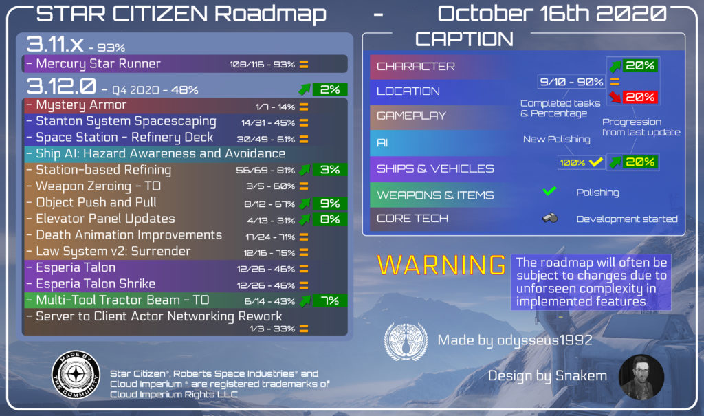 - Star Citizen Roadmap Roundup for October 16th, 2020: https://robertsspaceindustries.com/comm-link/spectrum-dispatch/17831-Roadmap-Roundup-October-16th-2020